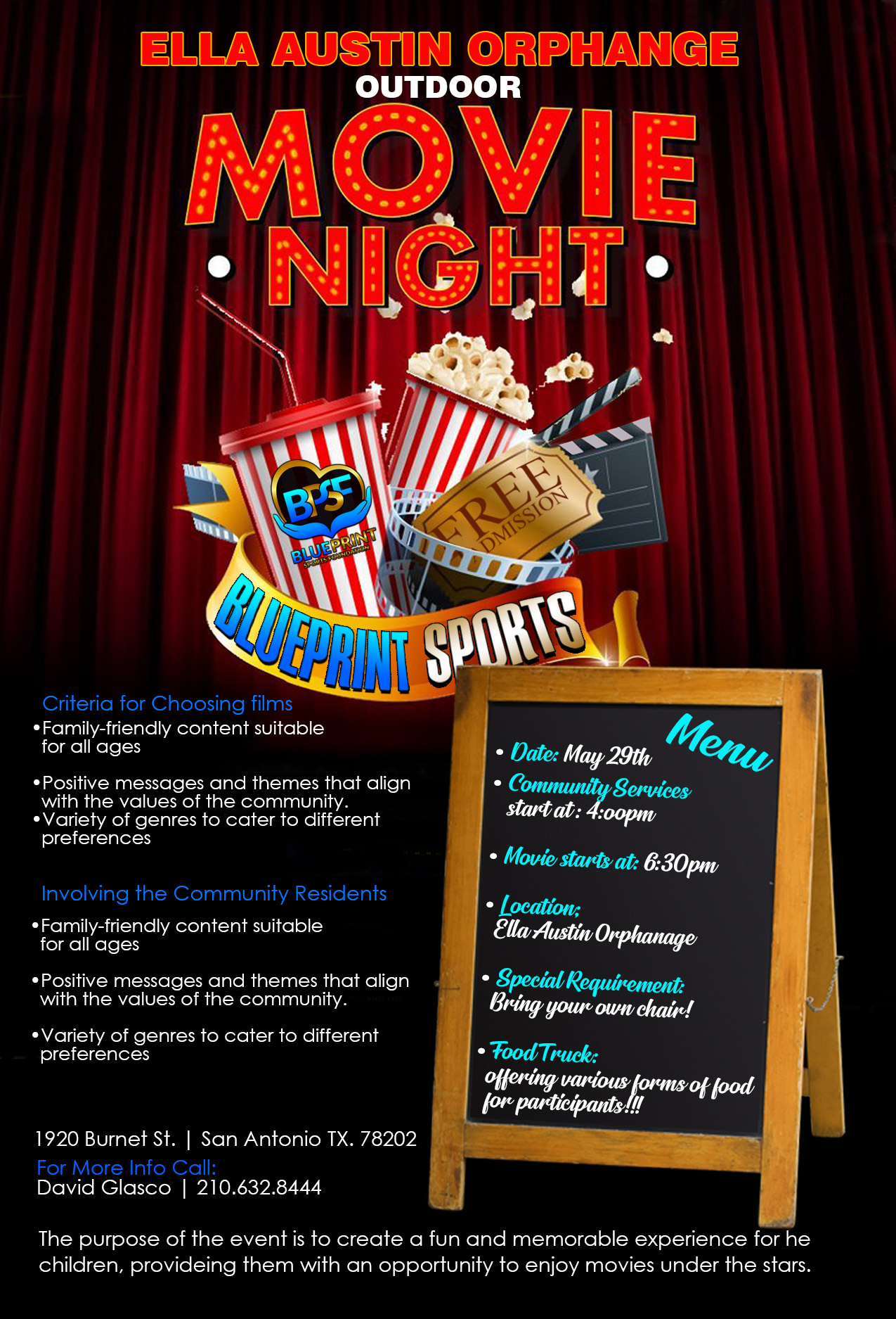 Join us for movies under the stars on May 29 at the Ella Austin Orphanage!